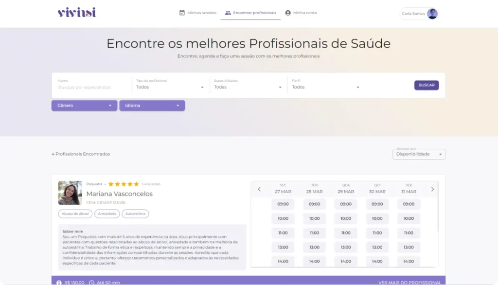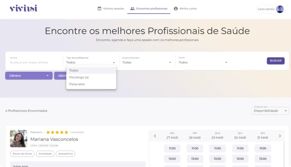 Use nossos filtros para encontrar um psicólogo ou psiquiatra com o perfil mais adequado às suas necessidades.